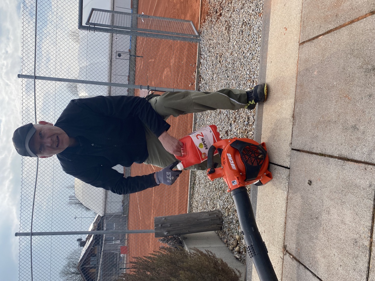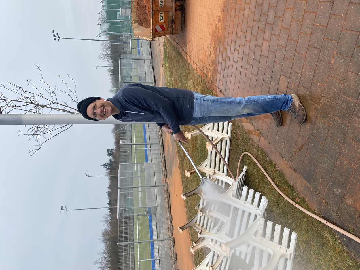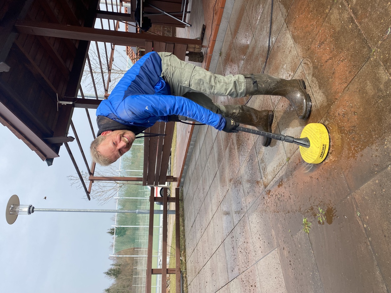 Unkraut raus, Altholz beseitigt, Terrasse sauber, Küche strahlt, Büro ordentlich, Bänke sauber, Abfluss gereinigt, Umkleiden bereit, Banner am Zaun, alte Tennisbälle entsorgt…